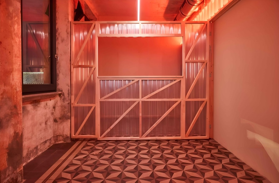 This is the case with Club Giovanile, a listening bar created through the renovation—by co.arch—of an early 20th-century villa in the transforming Certosa district. Here, original tiles, stucco, and vintage signage are preserved and intersected with exposed steel conduits: the project doesn’t erase, but grafts, building new uses onto what already exists.