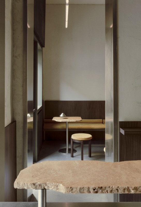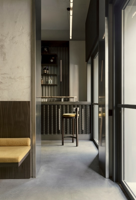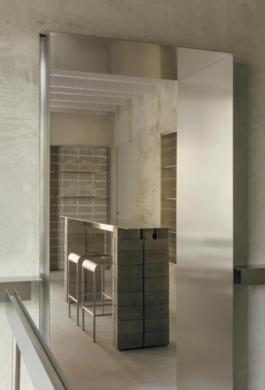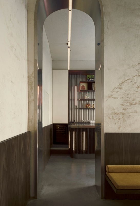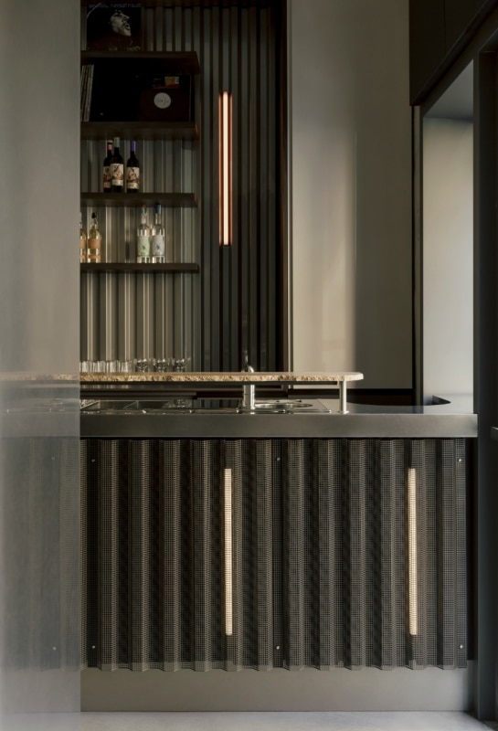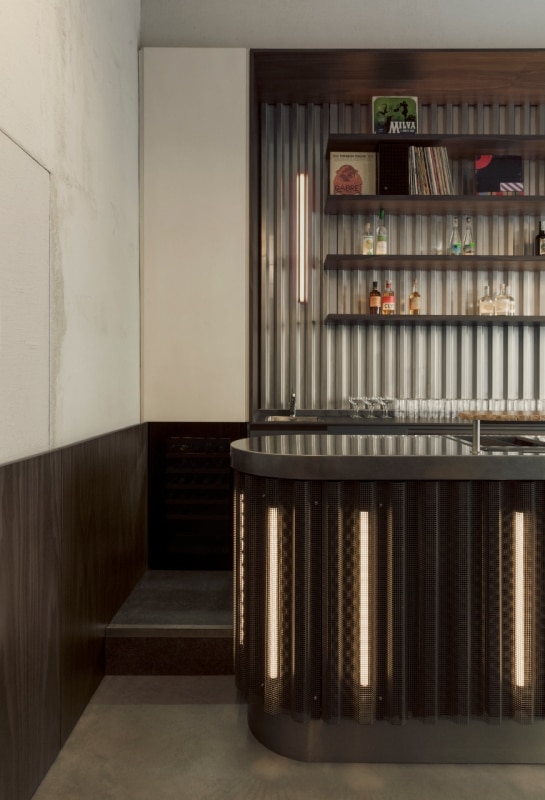 Steel, reflective surfaces, exposed technical details: the context may change, but the material remains. In listening bars, bistros, and restaurants, the counter has become the device around which space is organized.