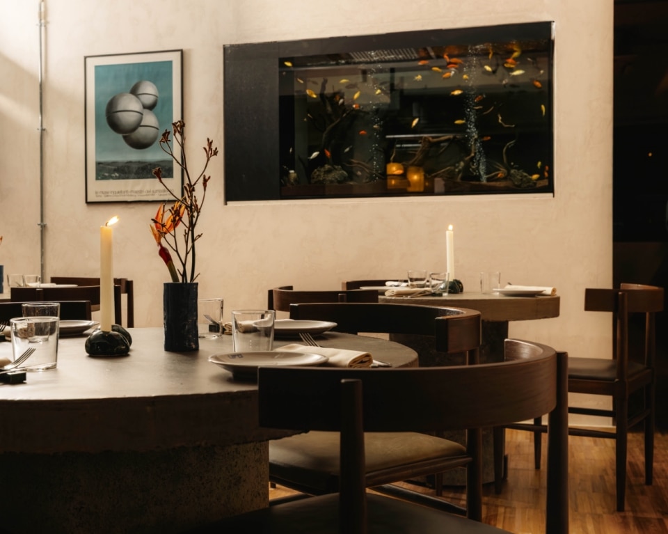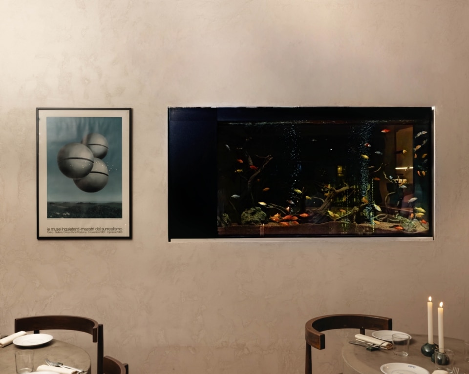 From slow-breakfast bakeries like Rito on Via Maiocchi, to sushi bars with small sharing plates like Bluesquare in the Tortona district, to restaurants that feel like full-scale photo sets—such as Fiorin Fiorello Fiore on Corso Ventidue Marzo, designed by Parasite 2.0—where natural light is filtered through drapery and replaced by large luminous grids above the counter and DJ console.