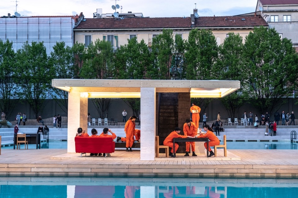 Jean Blanchaert called Valerio Castelli, Mosca & Partners, who collected a number of suggestions from Sweden: a modular house on the platform in the pool, a project in the magazine Rum and, around the water, the street furniture designed by the students from two universities and the iconic products of ten Swedish firms. From Sweden to Milan, again works by young talents, those of the Design School at the Politecnico with the exhibition Eros and those by people who have made design in Milan outstanding, like Cini Boeri, whose transparent chair will be present in one of the spaces caressed by a dancer.