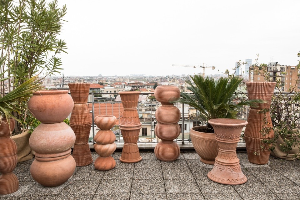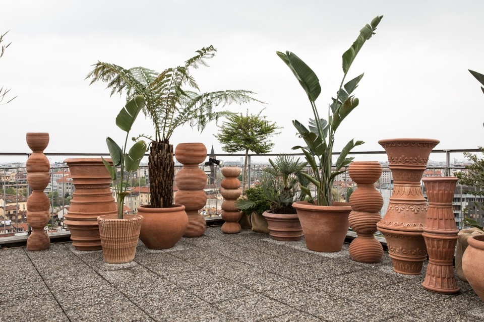 Regular visitors to Milan Design Week, Ana Milena Hernández Palacios and Christophe Penasse, professionally known as Masquespacio, have come as protagonists to Milan this time with a refined project for Poggi Ugo, a 100-year-old company specialising in the production of Impruneta terracotta. In “Land” – curated by Valentina Poggi Ottobri in the loft of Martina Gamboni’s Strategic Footprints – a traditionally outdoor material is given form and colour without undermining its refined manual production and enters the home.