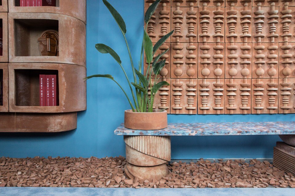 Valentina Guidi Ottobri: At a time when climate change is transforming the appearance of our landscapes, we are forced to ask how we can regain ideological purity and a respect for nature. The earth worked by artisans is the concrete application of this concept. Hence the idea of employing terracotta but from a new angle. I chose Masquespacio because they would be able to reinterpret Poggi Ugo’s century-old history of excellence in a contemporary formula.