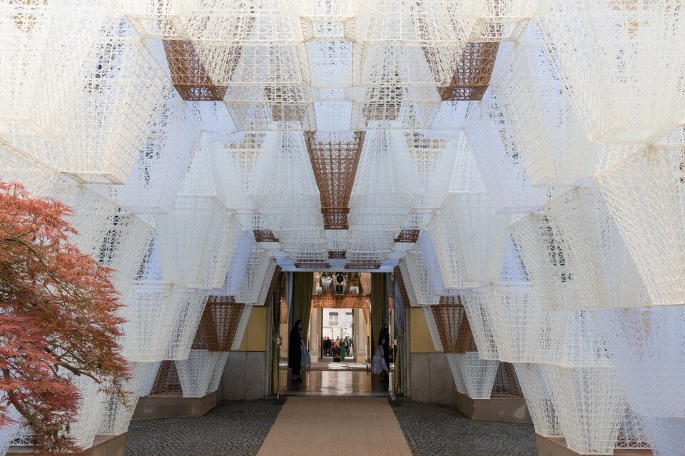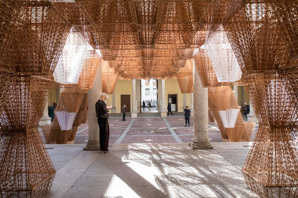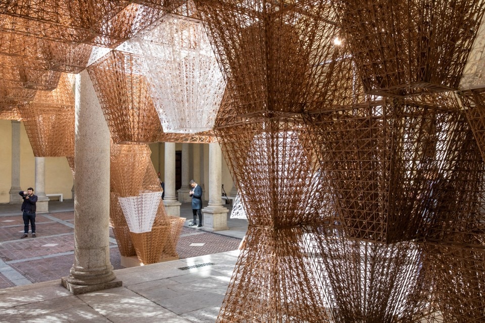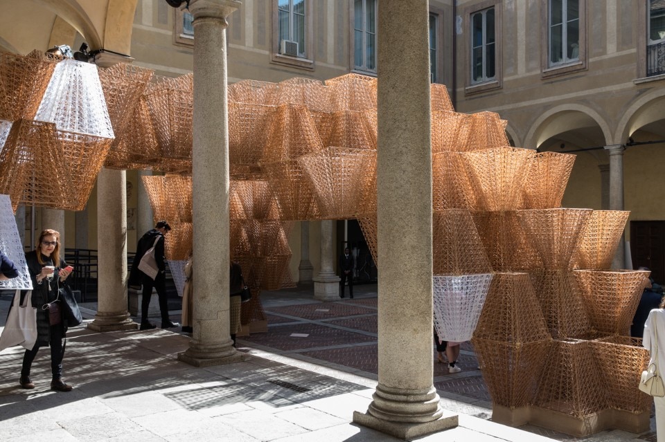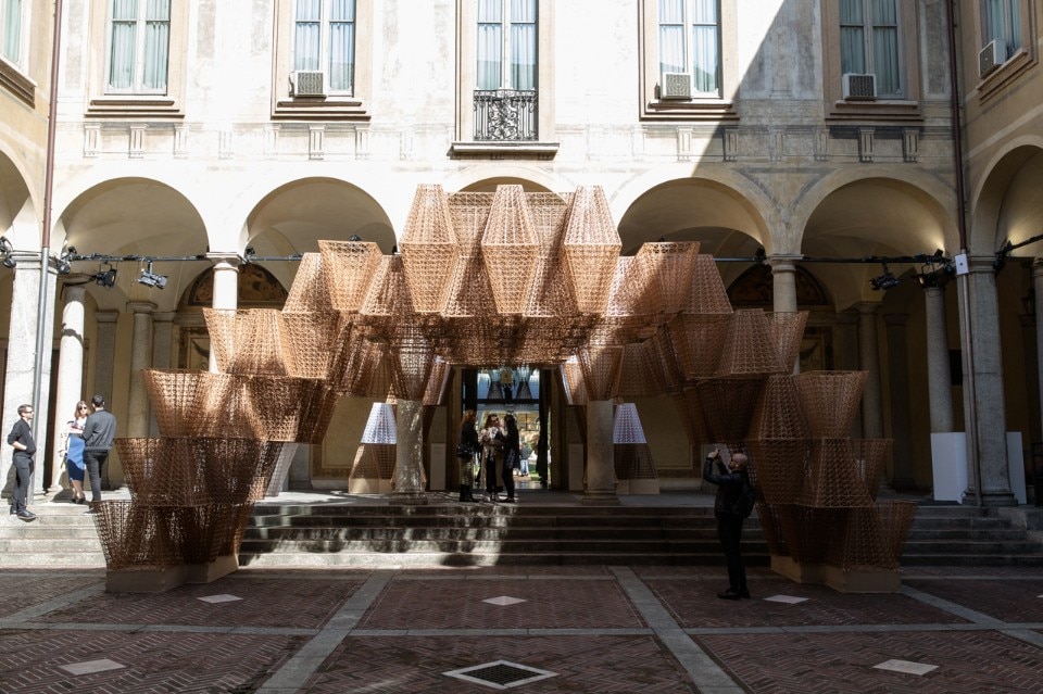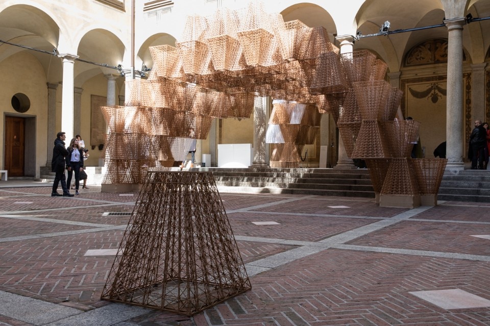 Conifera is Arthur Mamou-Mani's installion for COS at the Fuorisalone 2019. The project seems to welcome gently the visitors and lead them through the courtyard of Palazzo Isimbardi, where the exhibition takes place in a combination of old references and new design.