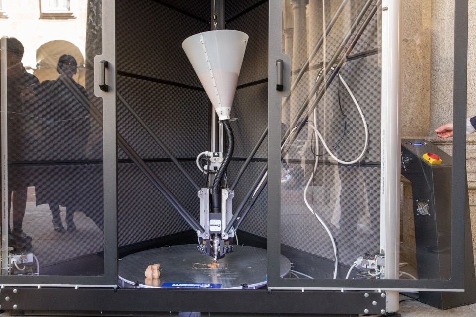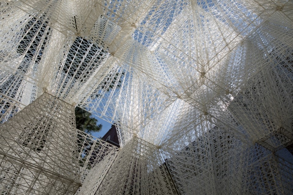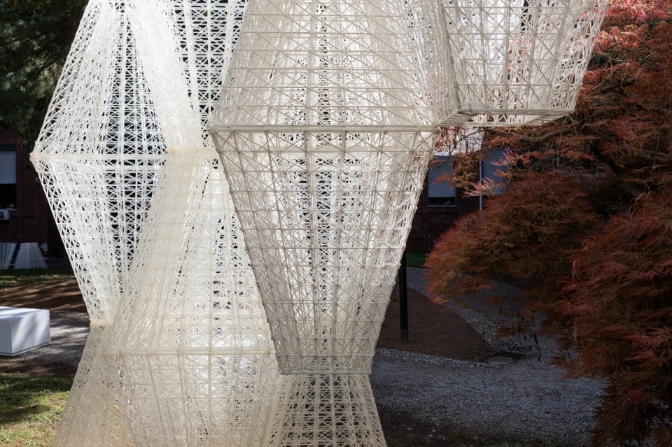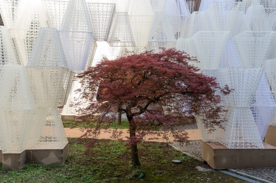 The piece is realized with 3D printed bricks made in bioplastic material and it is one of the largest structures ever made with this system. It shows how well technological research could co-exist with nature and we see it in the choice of renewable materials or in the light and delicate colours of each piece. Conifera’ s geometries and its joined cones create a light and soft path that connects the design world to environment. COS’ exhibition seems to float in the courtyard and between its columns. It will stay open until April 14.