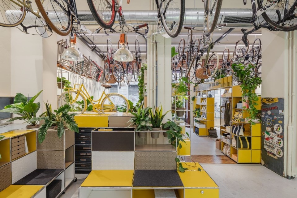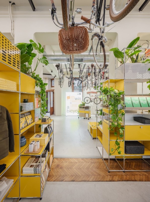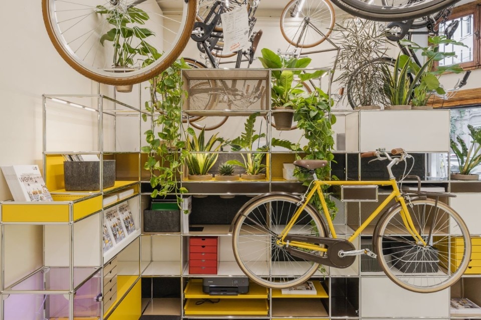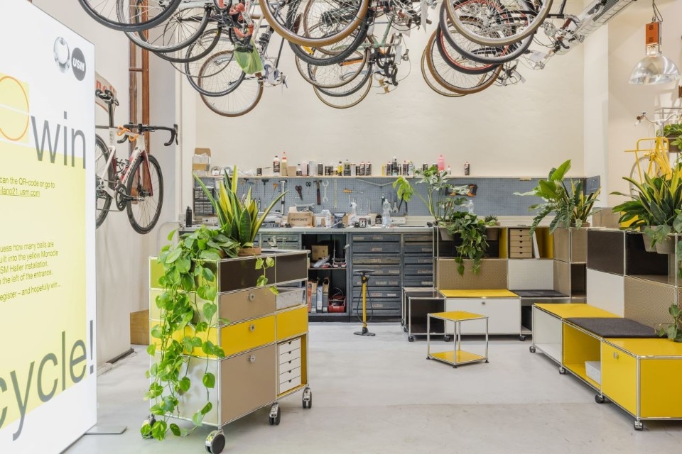 On the occasion of Milan Design Week, Rossignoli – the historic bicycle shop and resting place for cyclists in the Brera district – is hosting an installation created by USM and the international media brand Monocle.