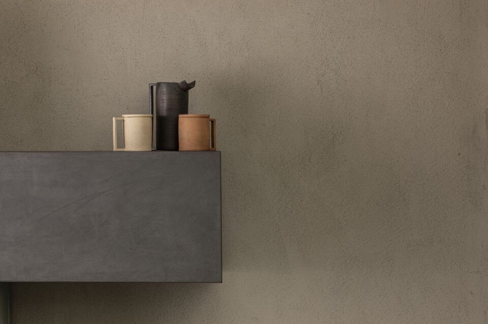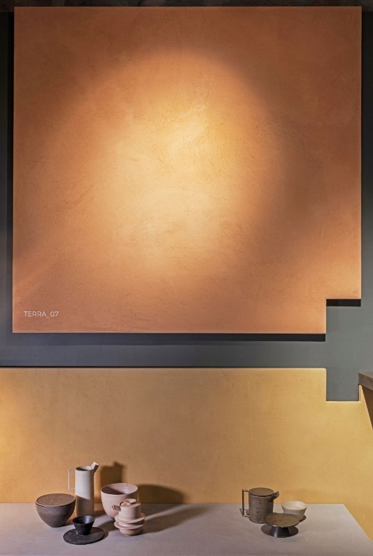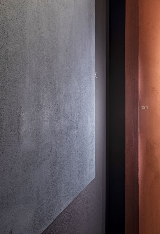 Inside the HDsurface showroom in via A. Volta 18, the texture of clay takes centre stage. The company, which specialises in concrete and resin, metal and lava stone surfaces, presents Argille on the occasion of Milan Design Week: a new spatulate coating obtained from a mixture of clay, plant cellulose fibre, natural lime and micronised marble powders.