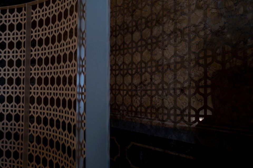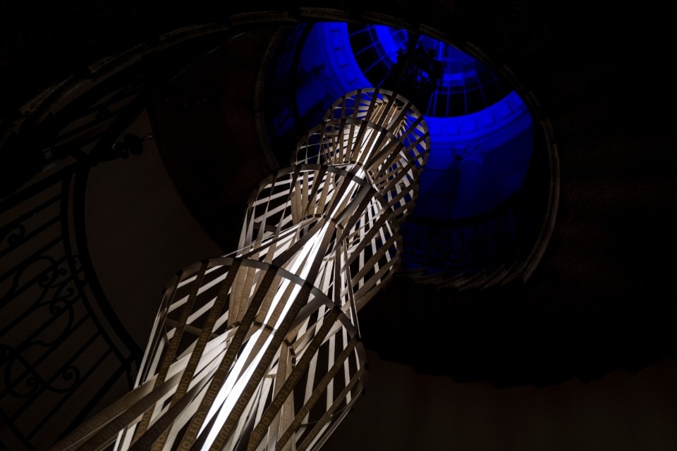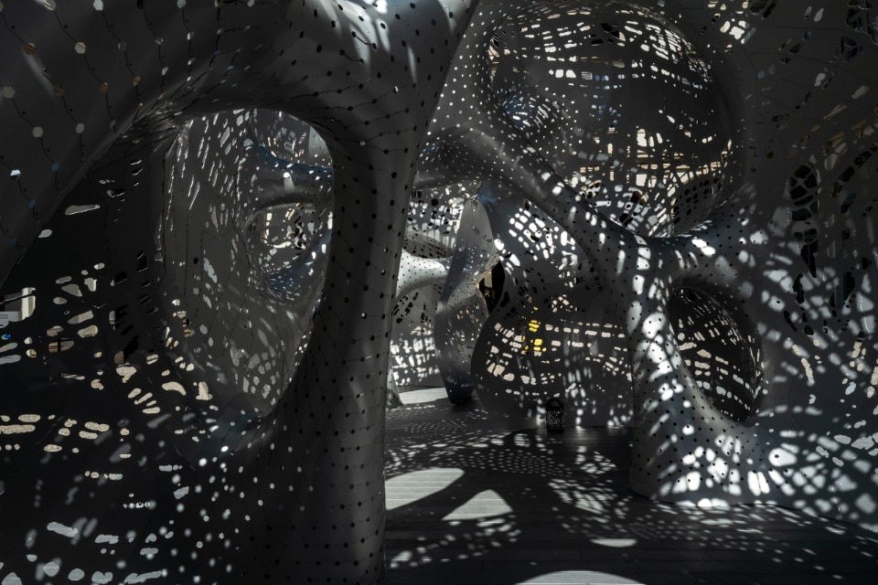 In the courtyard, the Nomadic Pavilion, the enormous steel cloud by Theverymany/Marc Fornes, light and massive at the same time, narrates the spirit of the journey that then welcomes visitors to the courtly rooms on the piano nobile.