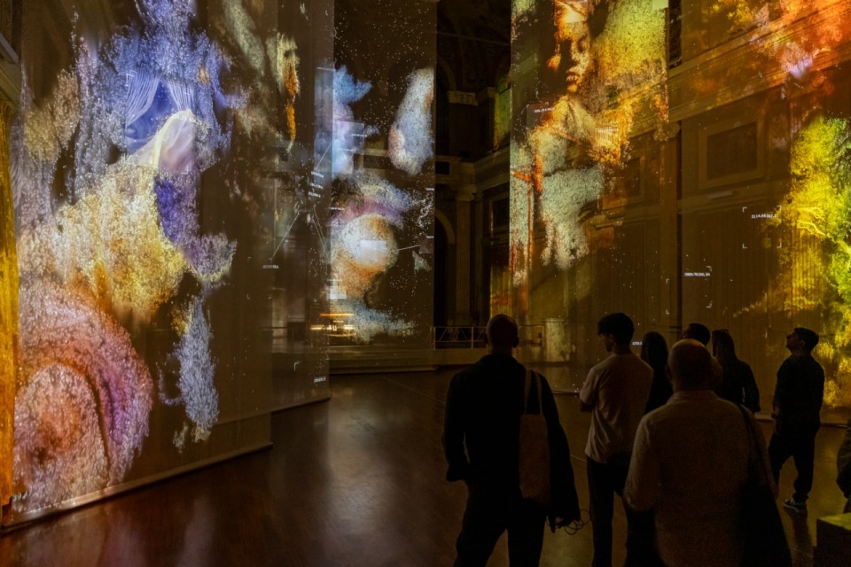 A short walk from Villa Necchi Campiglio, the Istituto dei Ciechi – founded in the 19th century to support the education and inclusion of visually impaired people – hosts a striking intervention in its Sala dell’Organo (Organ Hall). Here, an organ destroyed during World War II returns to sound for the first time in nearly a century. The occasion is Anima Mundi, a site-specific installation by multidisciplinary design studio Dotdotdot for Geely Auto. The project is both visual and sonic, framing the idea of the Renaissance as an ongoing technological impulse that continues to shape our present. In the frescoed hall, plunged into darkness, five monumental scrims form an ever-shifting audiovisual environment activated by visitors’ presence. “Each scrim corresponds to a sphere of life, human and non-human, from the subterranean to the urban”, Dotdotdot’s Laura Dellamotta tells Domus. Still, the sound system is what truly stands out: a device installed beneath the restored instrument captures environmental data – presence, temperature, humidity – and translates it into a four-minute dynamic score, activating the organ in real time. The space itself, together with the bodies inhabiting it, becomes the composer.