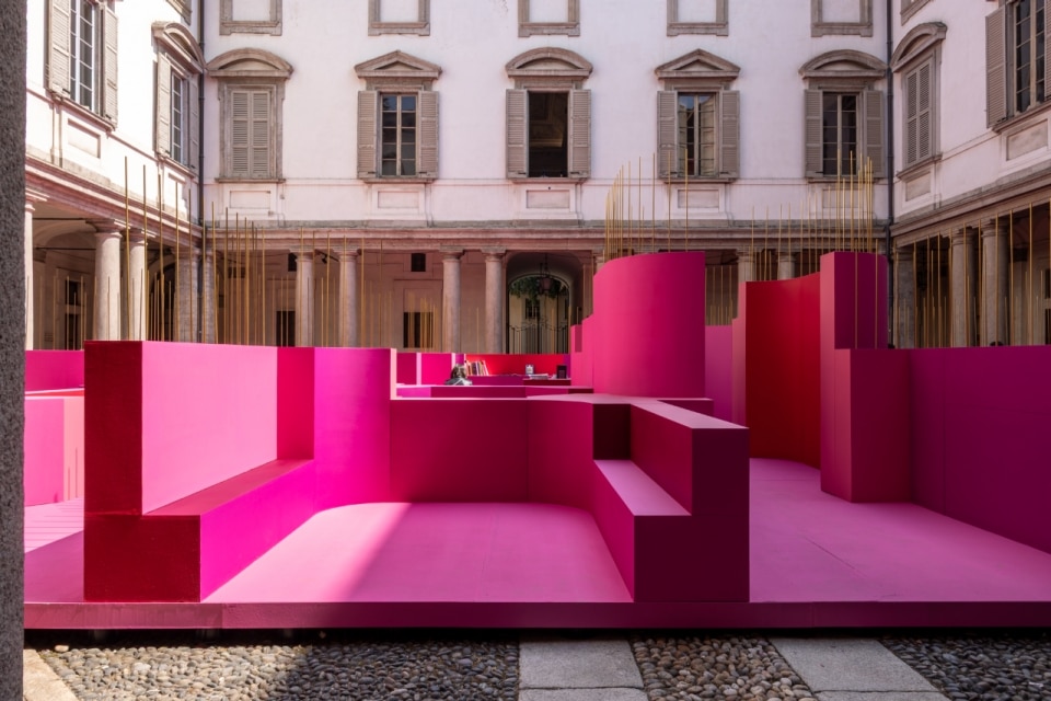 This year, for instance, the courtyard of Palazzo Litta is entirely dedicated to Lina Ghotmeh and her “Metamorphosis in Motion” (part of “Design Variations” by Mosca Partners), while from the cloisters of the Università Statale emerges “Mater” by Alessandro Scandurra: a mound of Ukrainian rubble arranged in a 16-meter ring. Scandurra has long been involved in reconstructing Ukrainian schools, but the event also features contributions from the usual suspects, such as Michele De Lucchi, Zaha Hadid Architects, MAD, Big and Ma Yansong, the current guest editor of Domus.