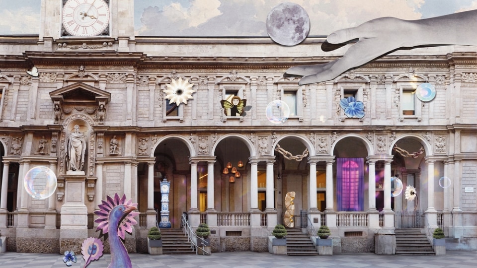 On Via Vivaio, at the Istituto dei Ciechi di Milano, the studio Dotdotdot and Geely Auto present Anima Mundi, one of the few explicitly interactive installations this year. It uses the sequence of courtyards and porticoes to create a visitor-centered experience.