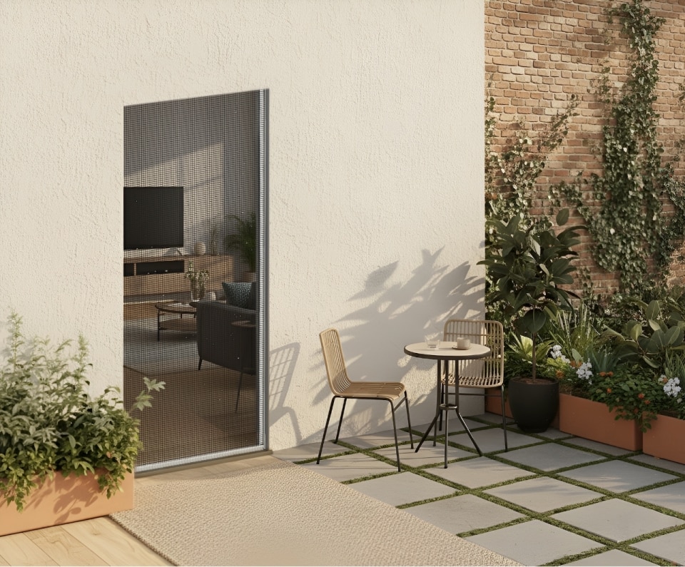 Within the indoor segment, Phantom25 represents one of the most advanced expressions of these principles. More than a conventional insect screen, it is conceived as a discreet architectural element, defined by essential lines and minimal visual impact. Versatility is central to its design: components are engineered for ease of installation and removal, as well as adaptability to existing and irregular openings. These qualities have been recognised through multiple awards, including the Sustainability Prize, alongside the achievement of an Environmental Product Declaration (EPD), among the first in its category.