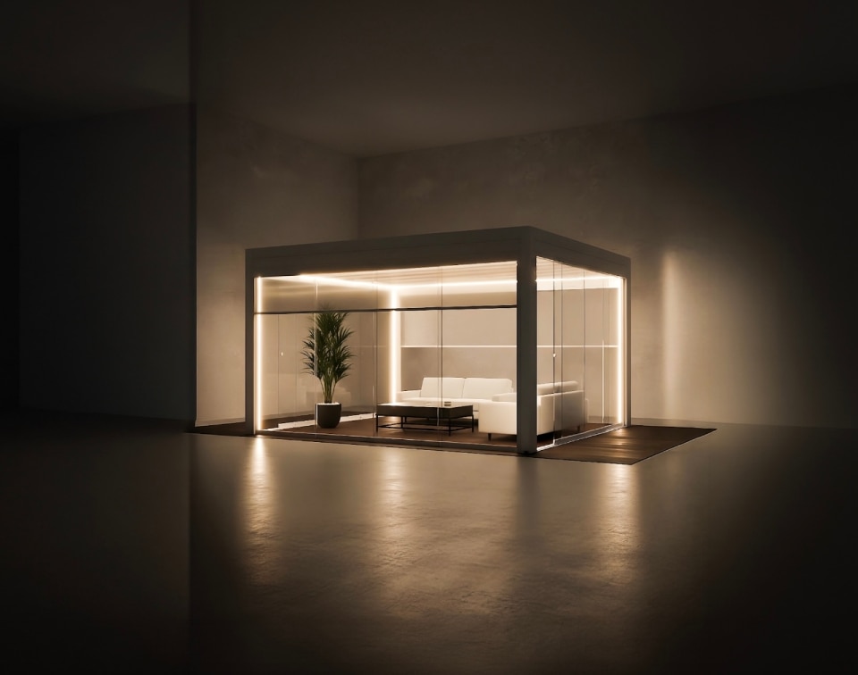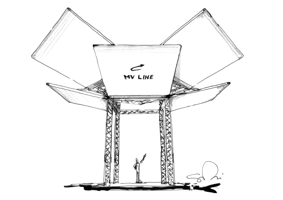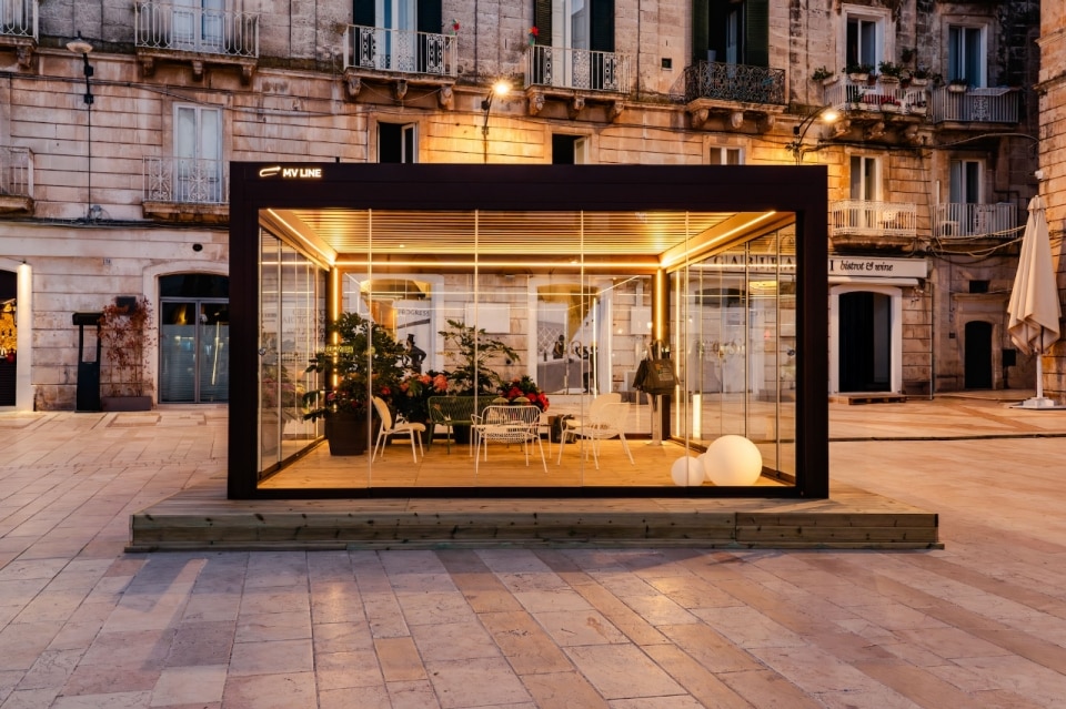 For 2026, MV Line once again takes an active role in the discourse of Milan Design Week, addressing the crucial relationship between light and the built environment, at both the urban scale and within domestic architecture. The company’s presence unfolds across the geography of the Fuorisalone. A first focal point is Officina, the site-specific event where One Works presents its Interior Concept & Product Design division, alongside UrbanGrid, a concept developed with MV Line: a scalable and adaptive aluminium system for public spaces integrating patented solar shading, lighting, Wi-Fi connectivity, and passive energy management. The brand also returns to the MoscaPartners Variations exhibition at Palazzo Litta with “Sunflower,” an installation derived from the SunDrive awning.