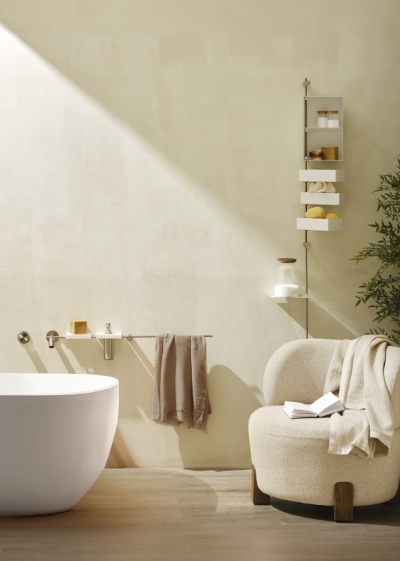 These themes are central to contemporary design discourse, and by engaging with them, Ritmonio presents a clear vision at the Salone del Mobile: the bathroom as a coherent ecosystem, a space that takes on a leading role within the domestic landscape and its design.
