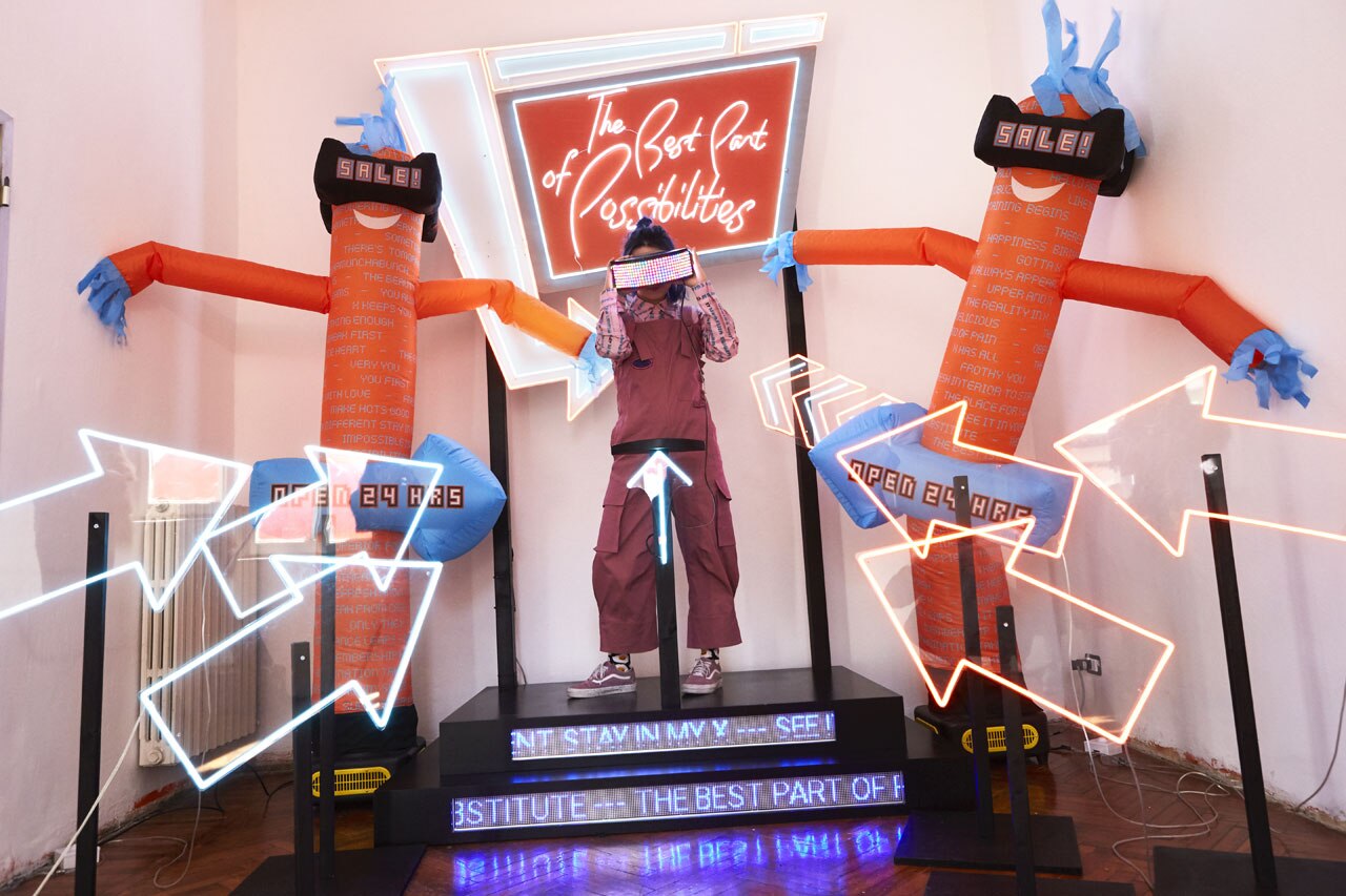 In the Marni space in viale Umbria 42 a large ramp offers visitors an original look at the space, filled by a large collection for indoor and outdoor home furnishing, full of color and playfulness. The Moonwalk ends with two large slides referencing Carsten Höller, open to the public, especially children.