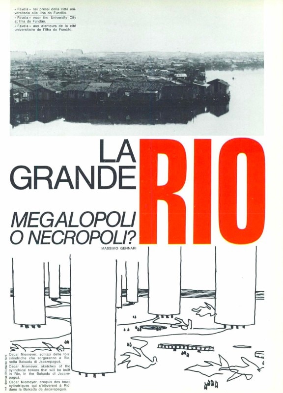 In March 1975, the cover of Domus 544 is entirely filled by the colorful, meandering drawing of an urban plan for Rio de Janeiro by Lucio Costa. The article that it refers to, though, is far from the “usual” description of the conceptual, formal and structural stunts of Brazilian modernism. The Great Rio. Megalopolis or Necropolis? is the chatcy headline of a passionate, polemic reconstruction of the city’s urban history, from its foundation to the 1970s.