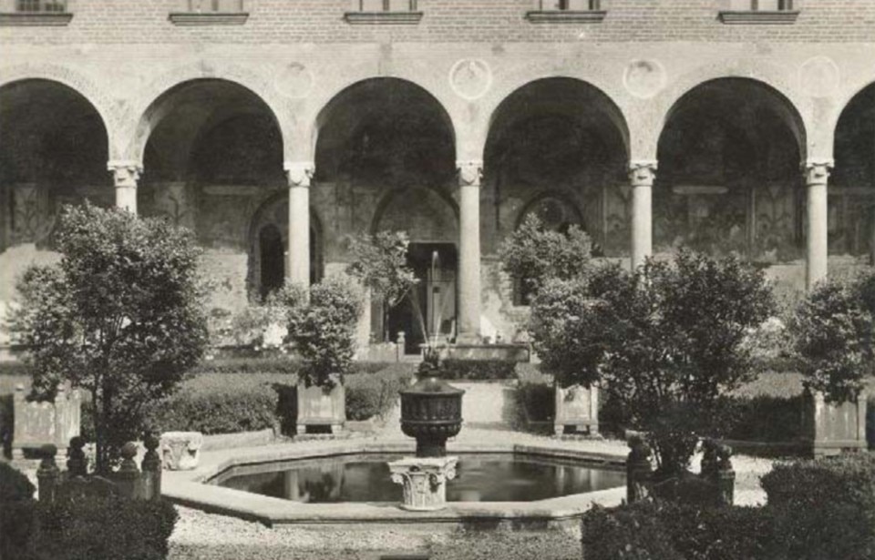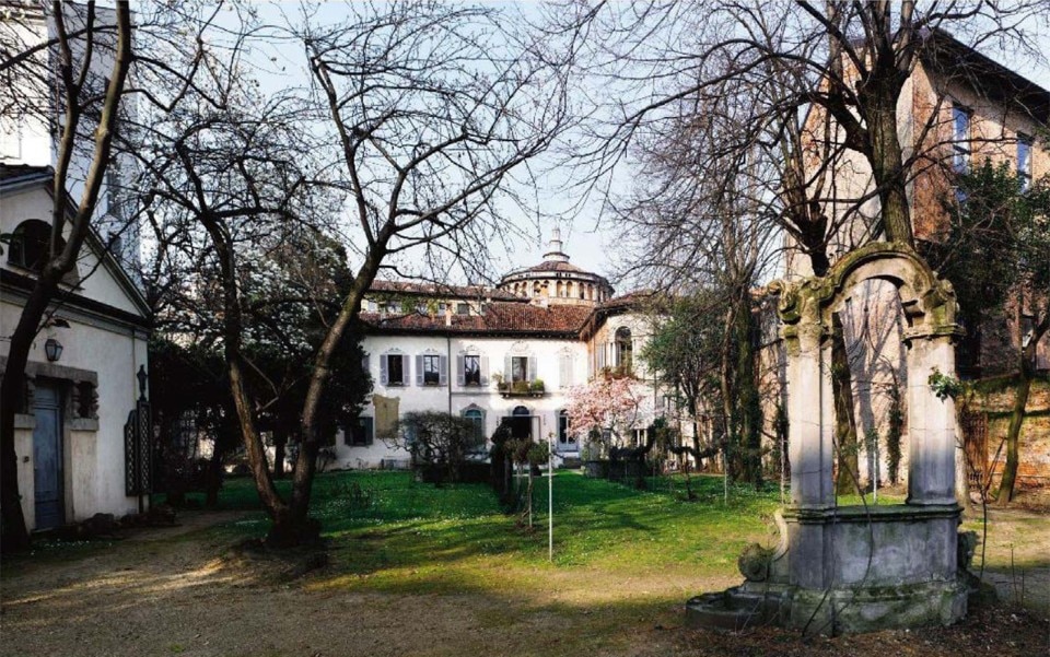 The history of the garden of the Casa degli Atellani on Corso Magenta is legendary. The “flowering and delightful” garden extends from the Casa to a private road, Via De Grassi, redesigned by Piero Portaluppi as “a tree-lined rectangle where an ancient pergola covered with grapevines still endures, challenging Father Time. It is what remains of Leonardo da Vinci’s vine. Under this ancient pergola, it is certain that Leonardo sat and meditated, feeling his divine creations jumping around inside him.” All this enhances the feeling of a secret garden, whose light “will enter the rooms and find the lunettes frescoed by Luini with portraits of the Sforzesco Family.” We used to peek at this mysterious oasis from the shady side of the ultra-private Via De Grassi, which injected a bit of fear into our adolescent play. Secret gardens are “peeked at” because we do not want to violate their privacy.