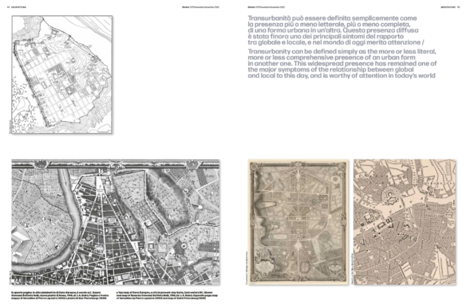Transurbanity can be defined simply as the more or less literal, more or less comprehensive presence of an urban form in another one. This widespread presence has remained one of the major symptoms of the relationship between global and local to this day, and is worthy of attention in today’s world.