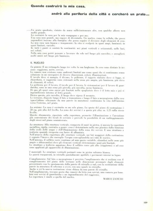 A square meadow, enclosed by sufficiently tall walls, with a few not very large trees. There I will build the house for my partner and myself. Not a large, but capable of becoming so. A nucleus, like in cells, that can grow as large as the family will, following the evolution of its components. My house will be white and transparent: life will take place in large, bright spaces; in well-defined, discreet spaces.
