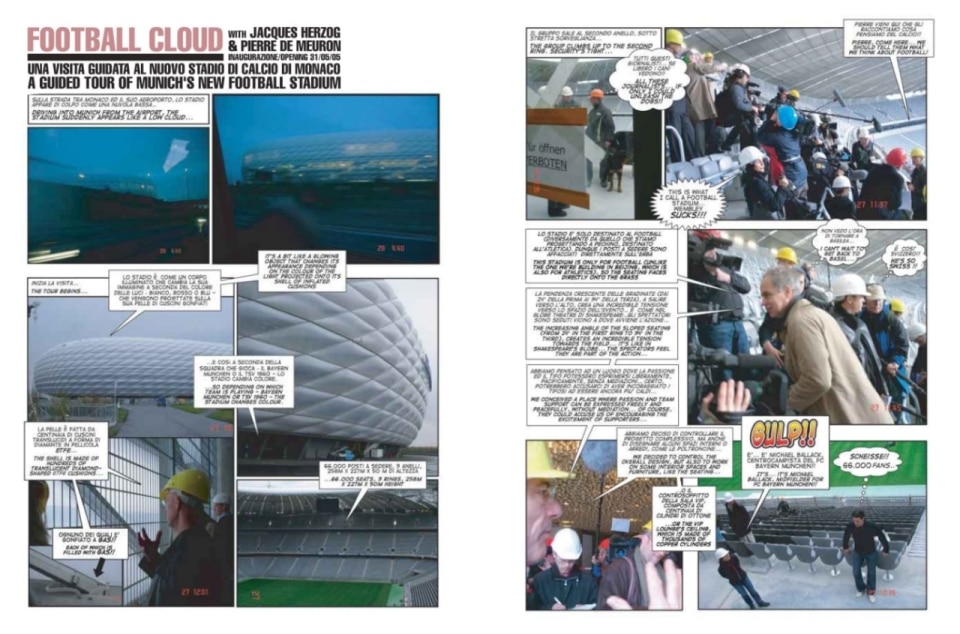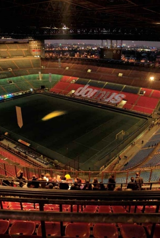 On Thursday, April 14th 2005, Milan's largest courtyard was opened to the public: the San Siro Stadium. Over 35,000 visitors (mostly young and very young) entered the temple of soccer. watched video projections and films, listened to discussions between art critics, attended book presentations and enjoyed musical performances. The experiment organised by Domus worked: the stadium went from being a black hole (as defined by Yona Friedman) to a place of encounter. exchange, meeting and talking, instead of just shouting - for one night, that is.