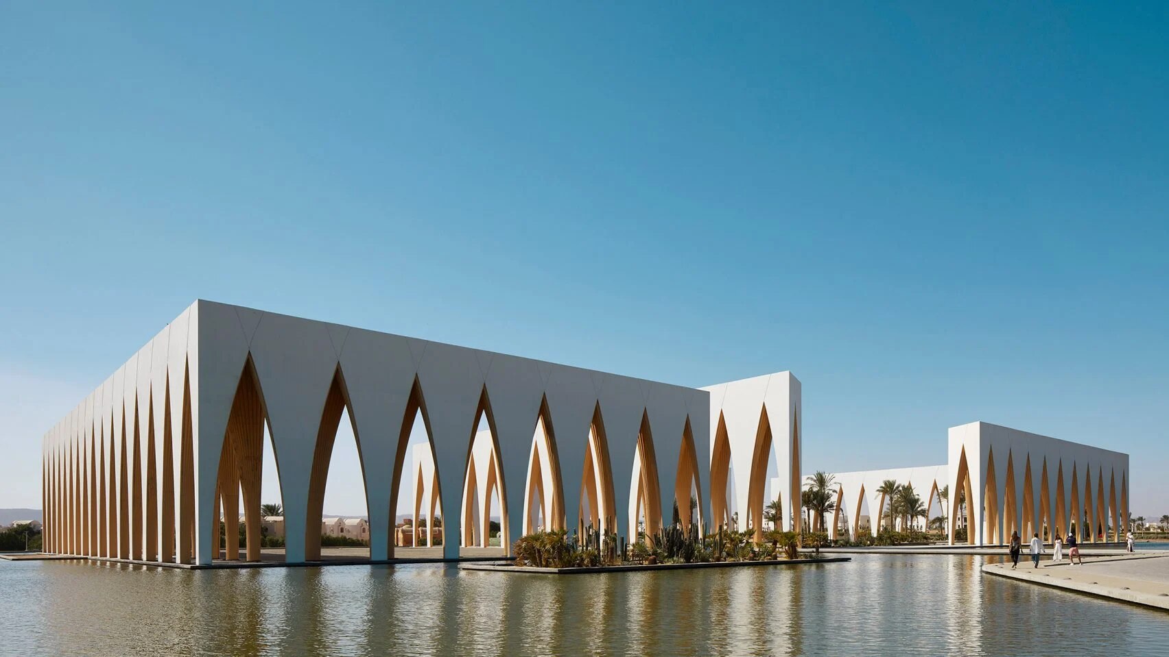 Studio Seilern Architects has enclosed the Gouna Festival Plaza in the Egyptian resort of El Gouna with a trio of huge colonnades.