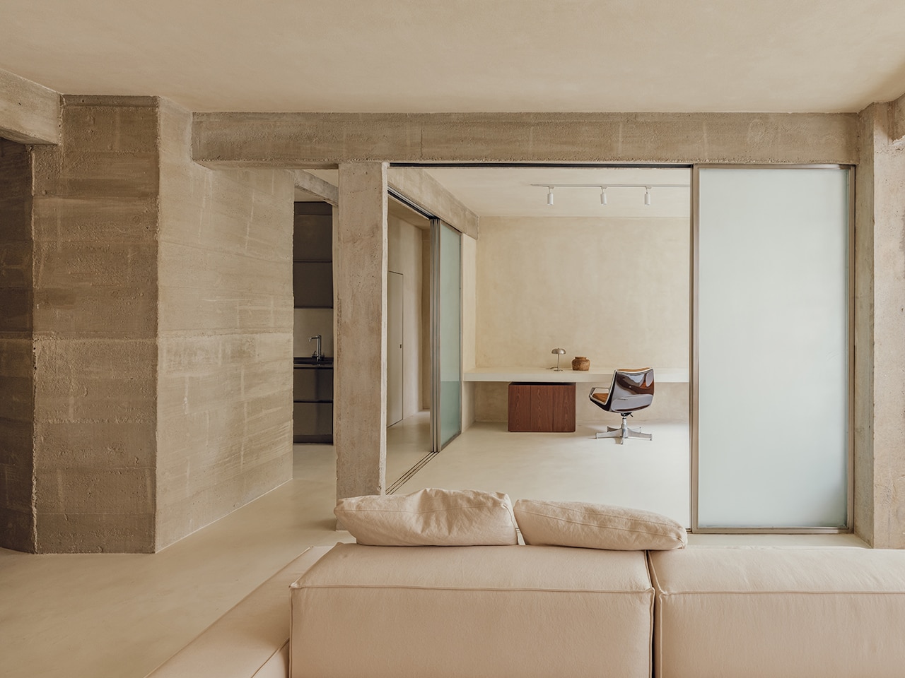 and a brutalist apartment in Rio de Janeiro, between smooth surfaces and exposed concrete