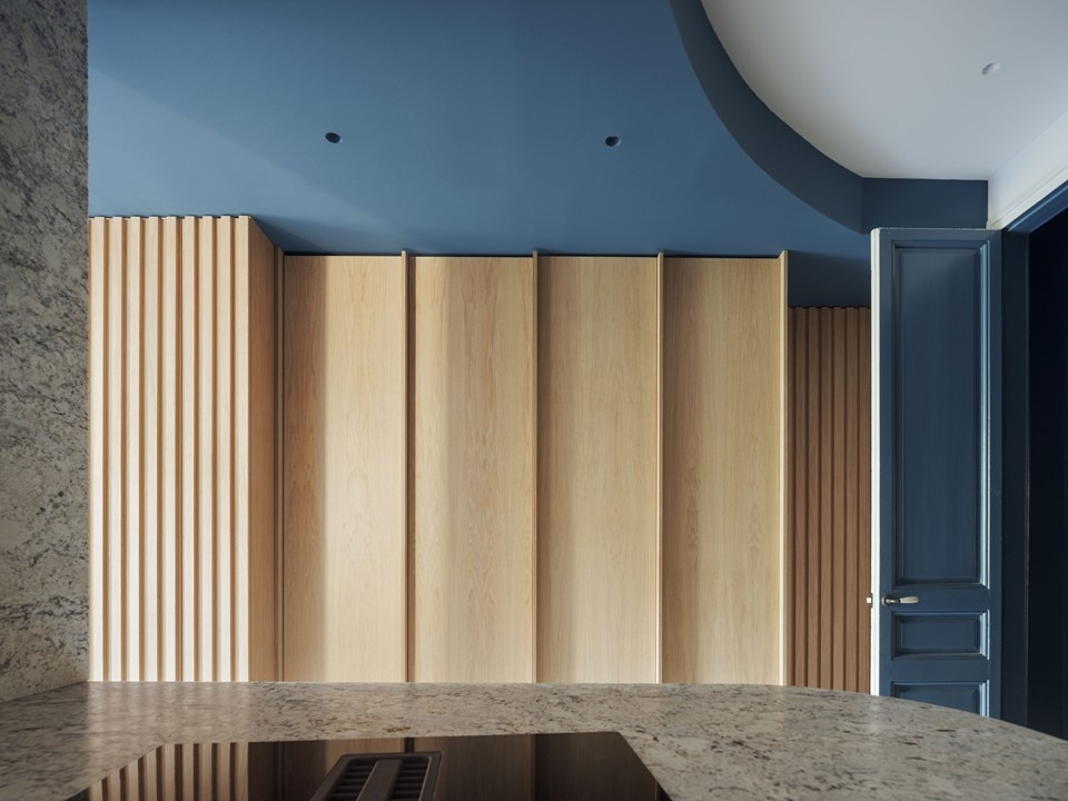 A vertical landscape of boiseries for a modernist apartment in Barcelona,