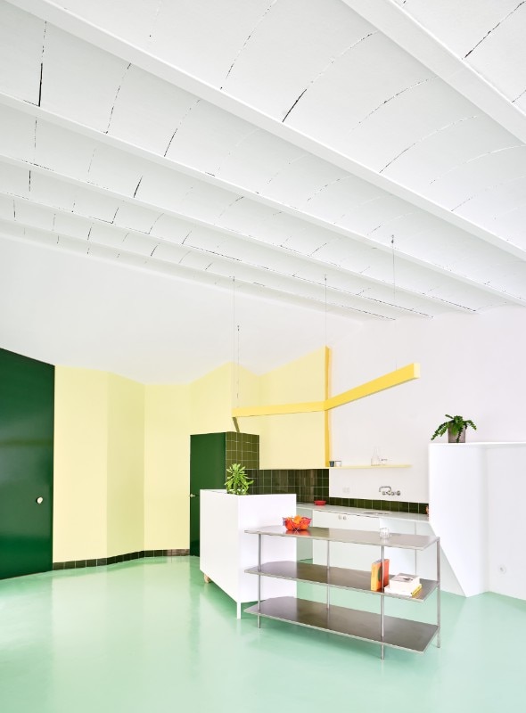 The renovation of a 55 m2 former barn with a gabled roof, located in a traditional Catalan farmhouse on the outskirts of the city, in the Sant Just district, has shaped a dynamic place distinguished by vibrant colours. Green, yellow, red and blue emerge in a pure white-painted space in which original elements such as Catalan ceiling vaults can be glimpsed. Continue reading