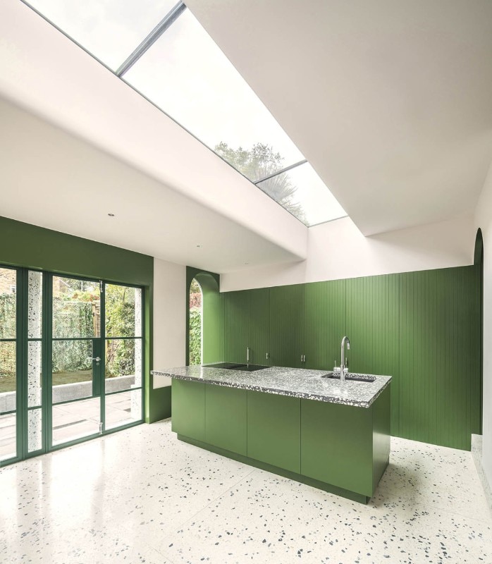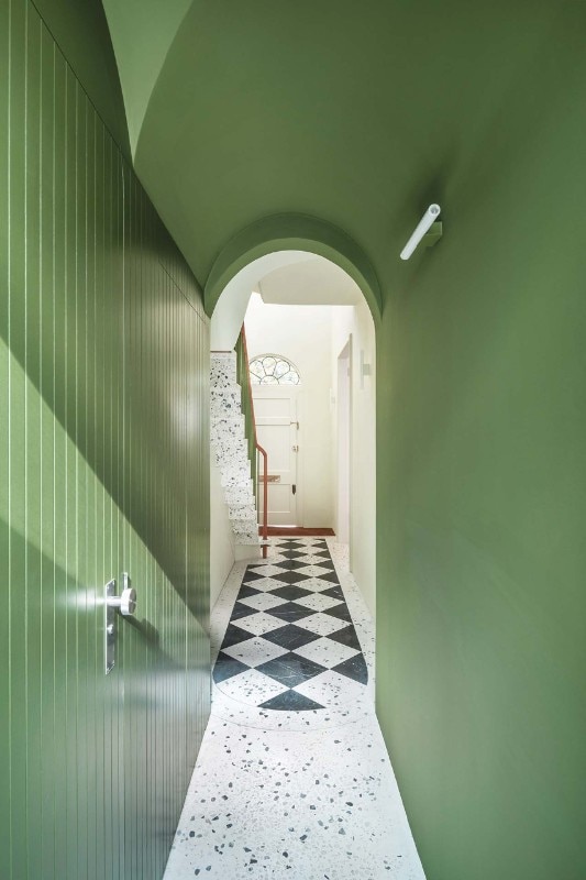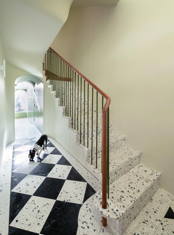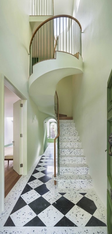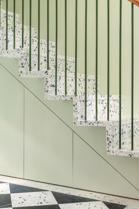 Neo-Georgian style finds a contemporary interpretation thanks to a staircase and terrazzo cladding.