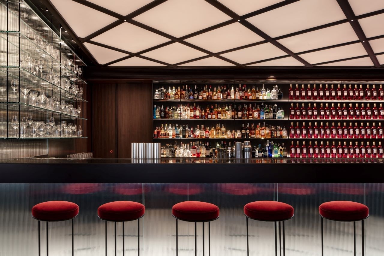 The 1920s atmosphere is punctuated by the garnet red tones of the seats – stools and benches overlooking the Galleria. Finally, Gaspare Campari Room in the basement is a vaulted space for bar-tender courses or private dinners.