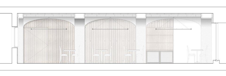 Located inside a building in Valongo, a Portuguese municipality in the district of Porto, the restaurant renovated by Paulo Merlini architects looks like a winery. The former space, with visible pillars and sanitation pipes, is completed by a series of concrete arches and a mirrored wall that visually expands the room.