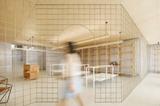 Wire mesh defines ephemeral divisions of a Portugal shop