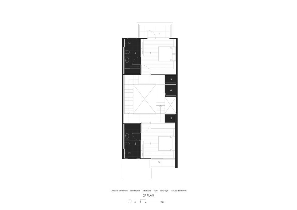 Designed by Saransh architecture studio, HS House is located between two buildings in the centre of Ahmedabad, India. The context largely influenced the layout of the family house, that could initially only receive the necessary light and ventilation from the two short perimetral sides: the studio therefore created a central, inner court around which the entire building is developed.
