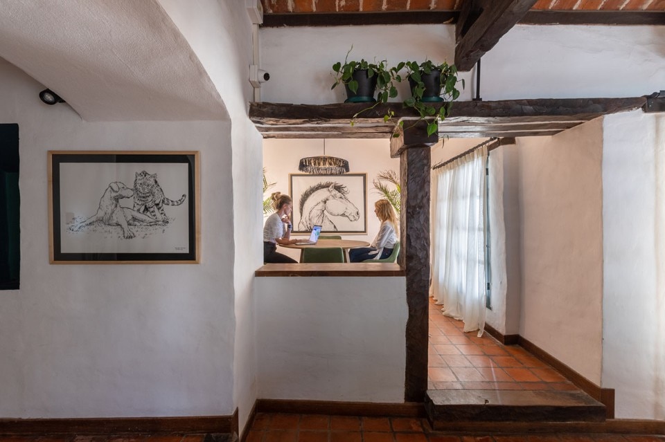 Among the many revisitations that question the identity of contemporary offices, the one implemented by Circo Espacio Creativo studio in Cordoba, Argentina, takes the form of an explicit dissimulation. Stripped of any stereotypes related to the “nine to five” work organization, an old house is reinterpreted as a succession of living rooms where the tables resemble a dining area and the furnishings – from the cushions on the numerous sofas to the carpets and plants – restore all the realism of a domestic environment.
