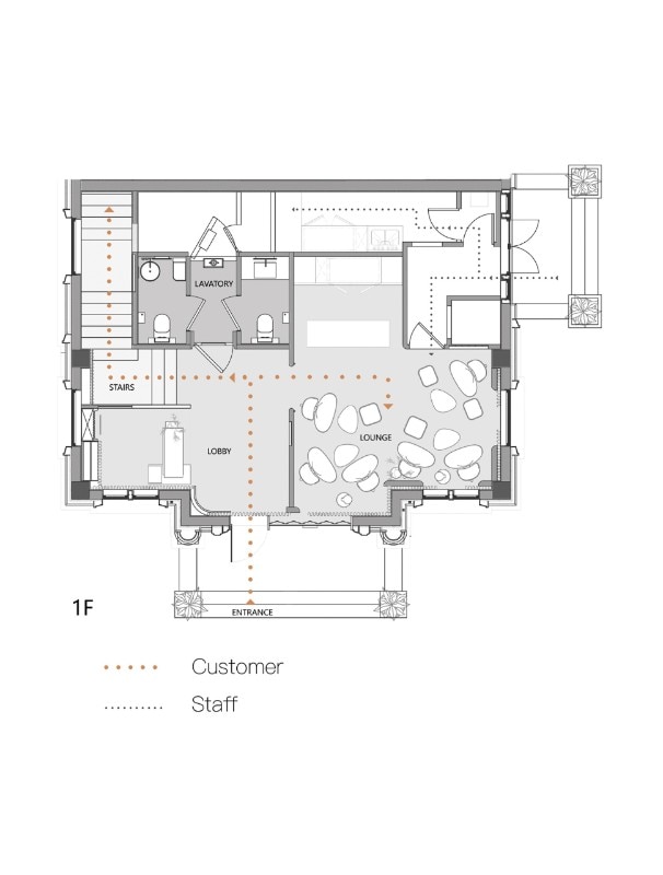 “There is no plan. The beauty of the accident” is the studio's motto. But nothing in this project is an "accident": from the materials to the textures, from the colors to the shapes, everything is studied in detail to best evoke the ethos of the place – a space dedicated to the tea ritual and a modern Karensansui (the Japanese dry garden, ed.).