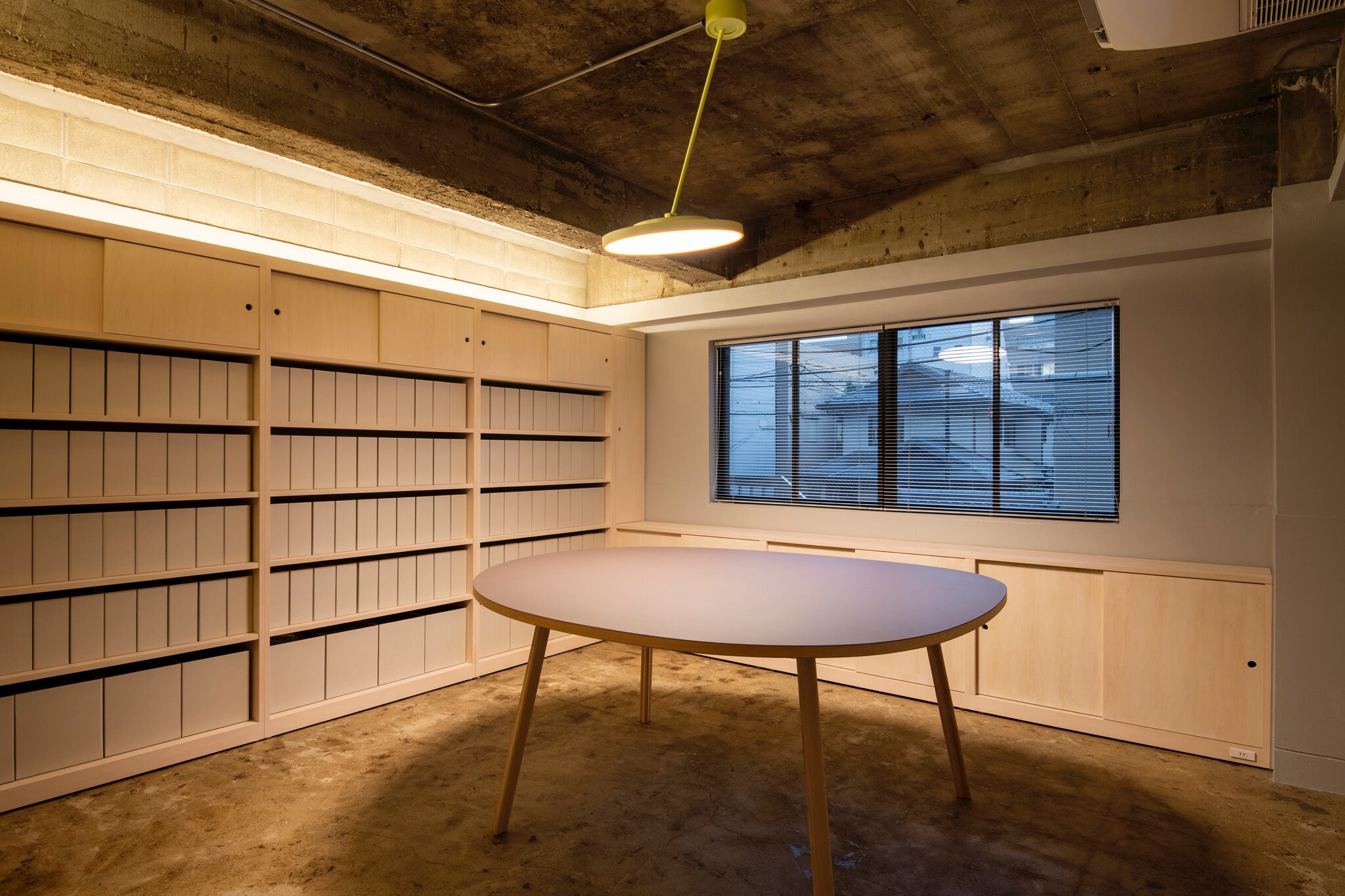 To the east of Kyoto’s Imperial Palace, Case-Real designed a tea laboratory for Toka – a brand specialising in the production and sale of infusions based in a traditional Japanese house. The project is a minimal and multifunctional satellite space for the tearoom: its 33 square metres serve as a laboratory for experiments and workshops, an office and a warehouse for storing a wide variety of tea leaves. The interior of Toka Lab preserves the features of the former structure, leaving the original floor and concrete ceiling beams exposed. The environment is completed by furnishings in neutral tones, without partitions: a counter separates the refrigeration cells for collecting leaves from the working area, where a curved table is placed. Basswood plywood shelves stained white, used for storage, embrace the space.