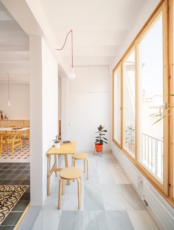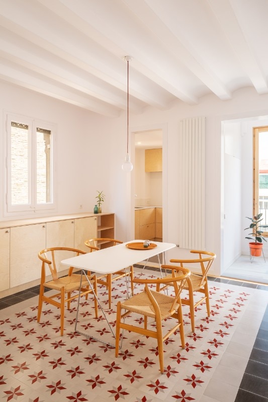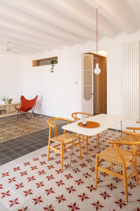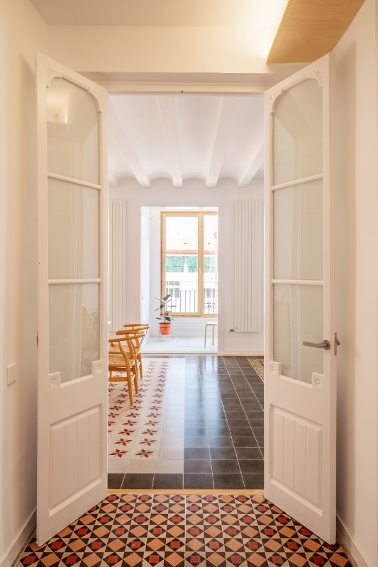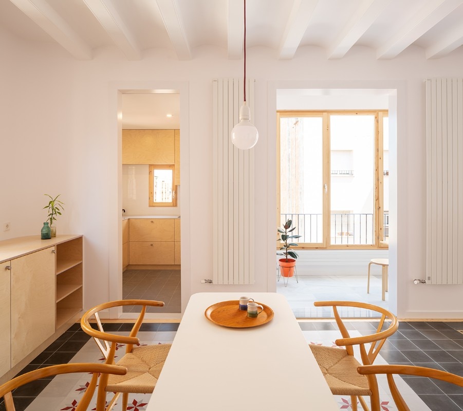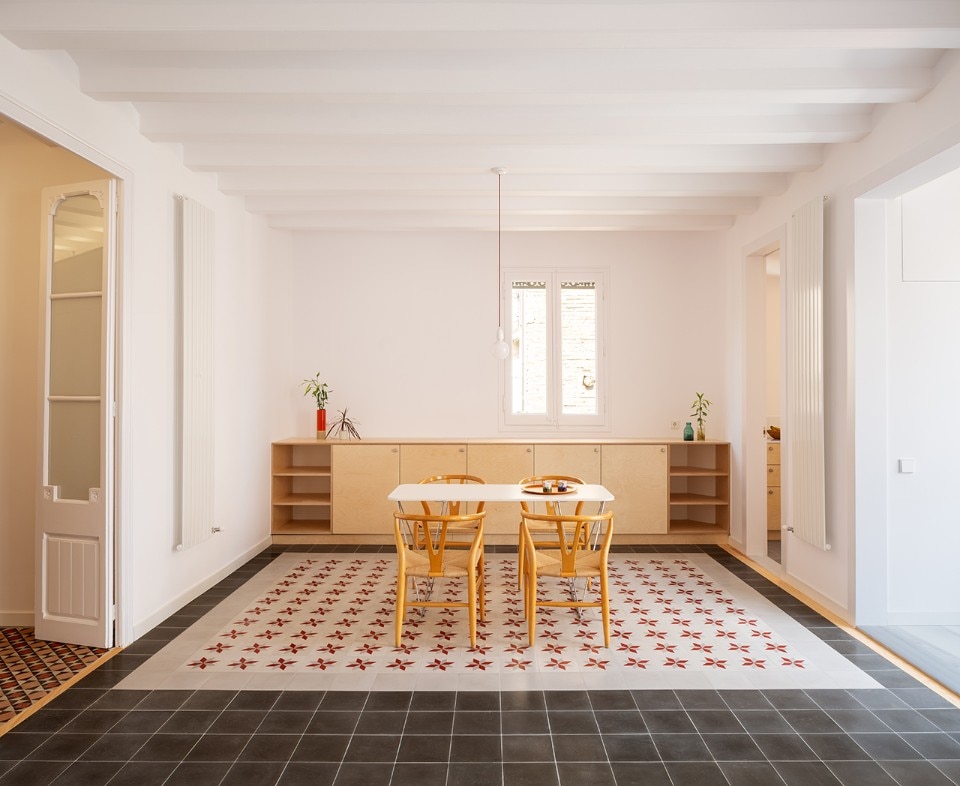 The aim of these projects is to rediscover original features such as floors and ceilings and recover an atmosphere that has been lost over time. This strategy was also adopted by the Catalan architectural firm Parramon + Tahull arquitectes, for the renovation of a flat in the Sants district in Barcelona.