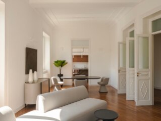 Part of a continuous row of houses defining the street front, the house has five levels, including the basement and a double-height attic. In these levels too, new elements such as concrete flooring, steel staircase and natural wood paneling find a synthesis with the pre-existing characters, creating a lively dialogue between the ancient and the contemporary.