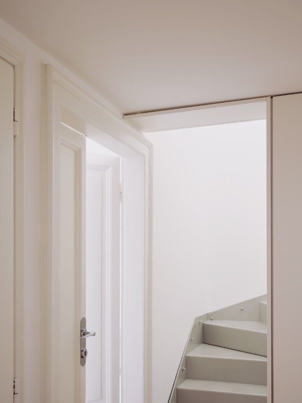 Adding emphasis to the project is the attic floor, a scenographic and luminous place, which is accessed by climbing the three flights of an iron staircase.