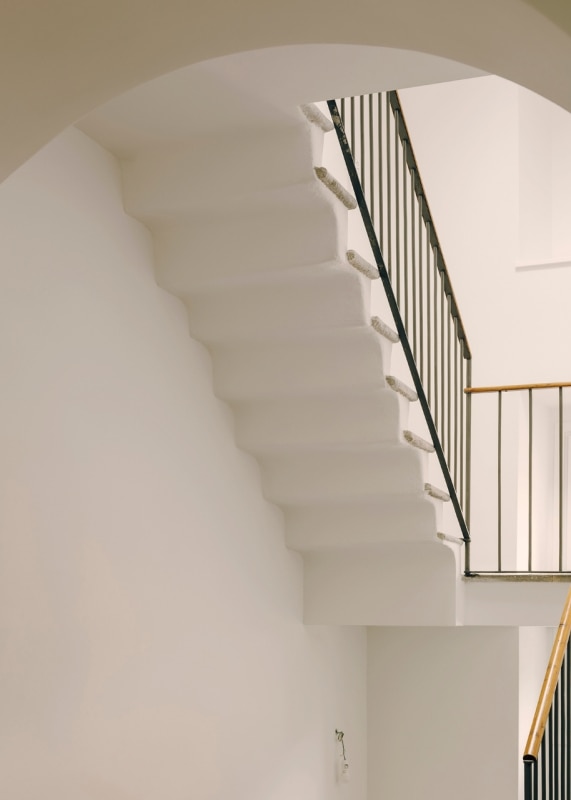 White is taken up on the walls of the entire villa, which are thus transformed into neutral and luminous canvases where the furnishing elements stand out, conceived as true sculptural forms, and in the presence of which the ancient fireplaces, thresholds, handrails, ceiling vaults, and all those traditional episodes, respectfully maintained and orchestrated in a graceful balance with modernity, remain silent observers.