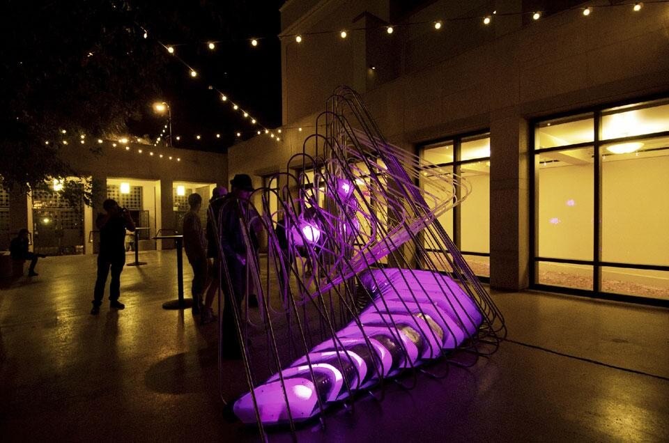 Consider Maurice Benayoun's work, Tunnels Around the World (2012), which he started in 1995. He hoped to connect cities with an interactive tunnel in which users could "dig" through cultural information and communicate with one another. Despite his best efforts, it wasn't feasible back then. This year he could realize the project as he'd always imagined it. Some artists hold on to their ideas until the technology is ready. There are also projects that use cutting-edge, experimental technology, such as MeatMedia's Brain Station 2 (2012), which detects brainwaves in the visual cortex and represents them with a light bulb turning on and off. Then there are works that reference technologies yet don't use them at all. Thomas Thwaites's The Toaster Project (2010) is about the comic fallacy of trying to make a toaster from scratch. The idea is that we've become divorced from the technology of something as simple as an appliance you can by for $5 at the local store, and questions how that impacts our society.