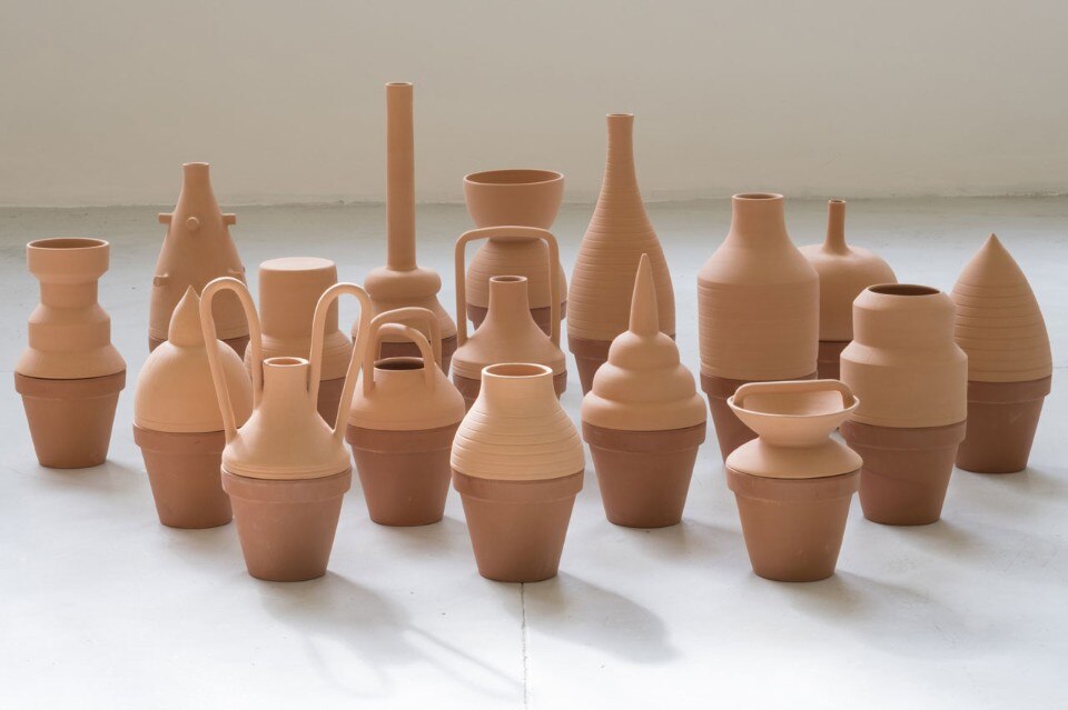 Vittorio Venezia: Many are unaware that much of Caltagirone’s ceramic work is manufactured outside the city, in an industrial zone that was developed five kilometres from the old city centre in the 1960s to accommodate the new production requirements. But this area is seizing up: it isn’t served by public transport nor does it have services, so it always has to maintain a link with the city. The sheds contain the industrial production with furnaces and presses but also a manual one revolving around lathes and master turners. This place has become the focus of a project that conveys this duplicity and the rift between the craft world in the city and the industrial world, trying somehow to reduce the distance between them. In this sense, all of Italy has, to some degree, hidden a world of manual skills and artisans behind the “industrial” word. We will present 20 vases formed of two halves: a traditional vase made from a standard mould, like those you will find in any discount store but with another half that has been reinvented with constant variations (the craftsman, supervised by Andrea, tweaked the process 20 times to spawn different products).