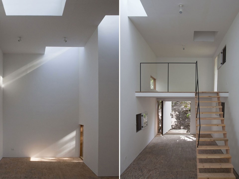Steven Holl: The space comes from the compression and intersection of four spheres with a Tesseract and the house represents a sort of empty memory of the lake. Michael Bell calls this compression “a lake of the mind”.