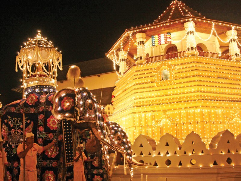 In Kandy, Esala Perahera takes place in August. A centuries’ old tradition, the procession of fire twirlers, whip crackers, traditional dancers, drummers, and caparisoned elephants accompany the majestic tusker carrying the sacred Tooth Relic.