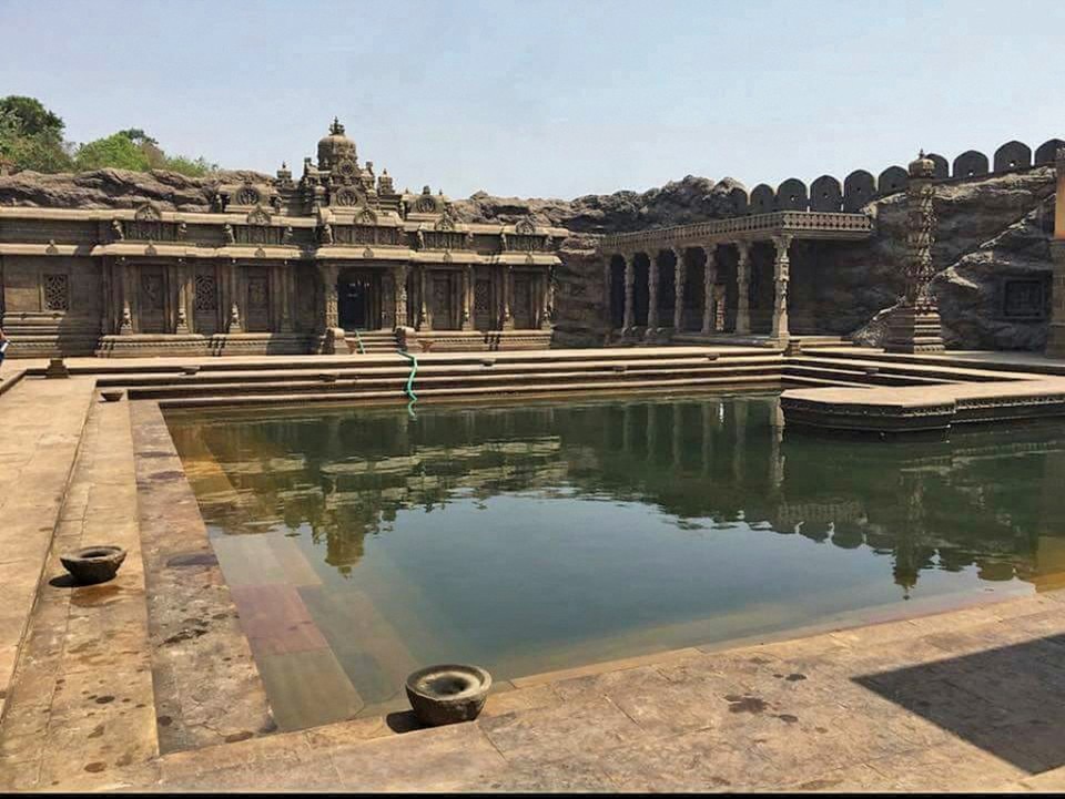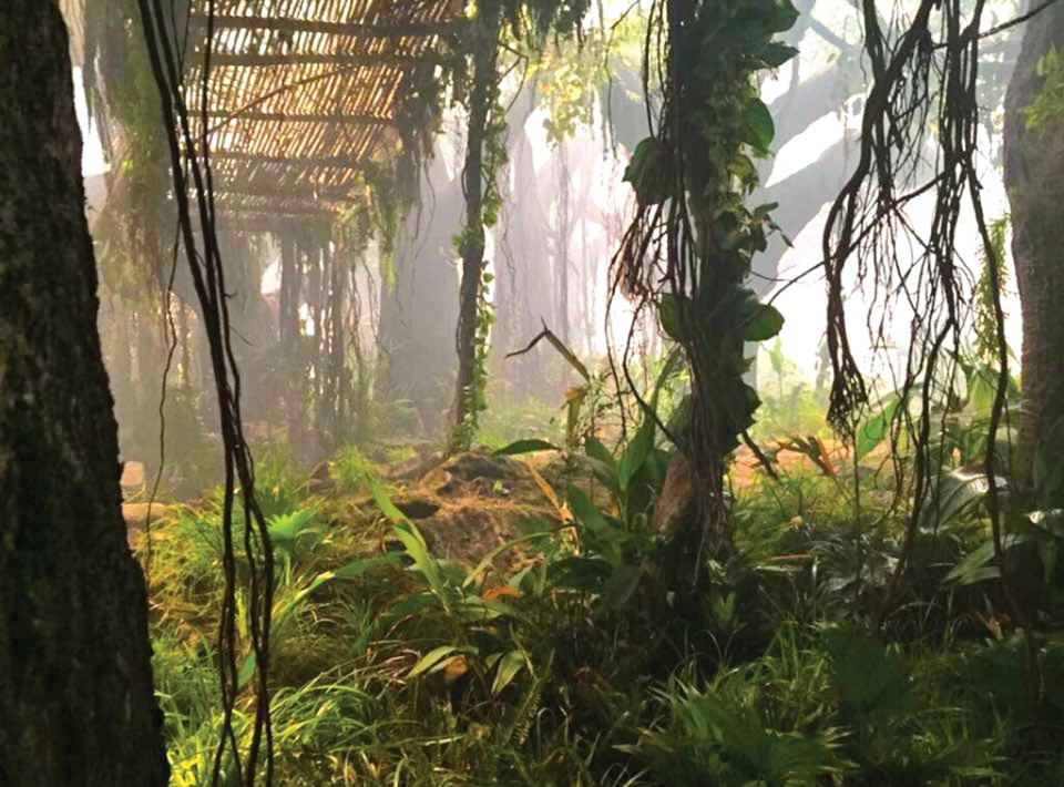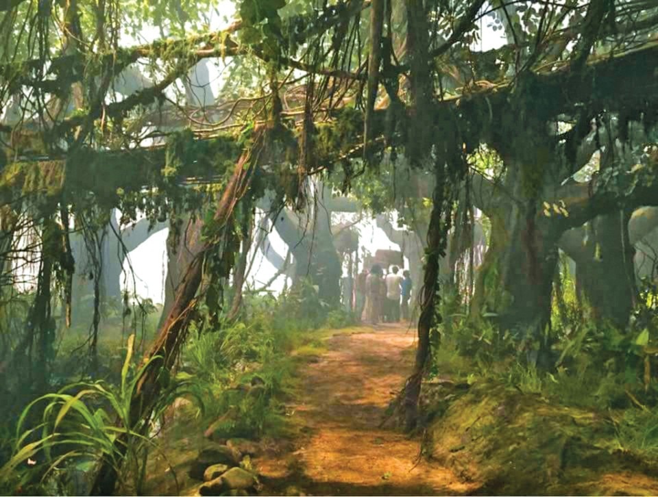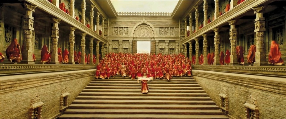 The jungle and cave temples of the Kingdom of Singhal (Sri Lanka) entailed a different thinking process. The director had wanted Subrata and Amit to create a jungle that was magical. Although all sets were designed by referring to various material available from the period, Subrata and Amit stress that ultimately all sets were done in their own way. Sudeep Chatterjee, director of photography, explains that in every feature, three vastly different worlds had to be captured on camera. Wide angles and long shots were a key feature in the cinematography as the idea was to show a world that the audience had not seen previously.