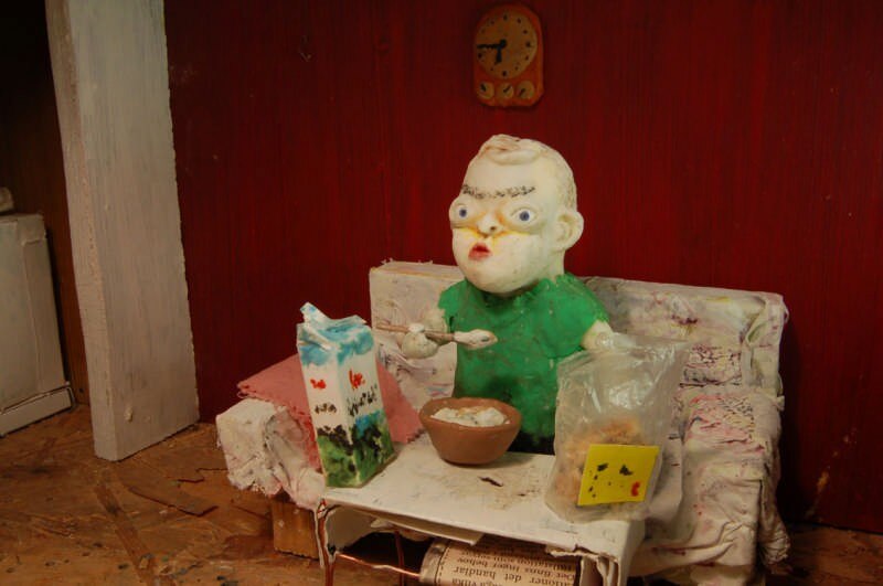 Ten years ago Swedish artist Johannes Nyholm created an original puppet known as Puppet Boy. The trials and adventures of this “little hero” were narrated in video form. He has been portrayed, for example in a claustrophobic sequence of windowless rooms, becoming increasingly frustrated, opening and closing doors he goes from one room to another seemingly battling with the anguish of everyday life. In a more recent video, he is the protagonist of a television documentary where an arrogant critic meets a vain artist, played by Nyholm, in his studio. In the final take, Nyholm dresses up as Puppet Boy, in a singular identification of artist and work of art. Shown at the Gothenburg and Cannes Film Festivals, the saga of Puppet Boy is now showing at the Moderna Museet in Stockholm (until September 25) as part of “The Studio”, a section of highly experimental work dedicated to animated images and web art.