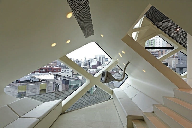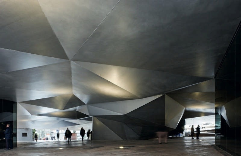 From above: Bibliothek Cottbus. Photo Future Photography / Erica Overmeer; Prada Aoyama, Tokyo. Photo Iwan Baan; Caixa Forum, Madrid. Photo Iwan Baan; Rehab Basel. Photo Ruedi Walti; Schaulager Basel. Photo Ruedi Walti