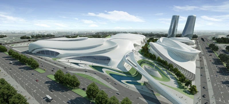 About the undulating fluid forms of the Cairo Expo City design, Hadid explained that they were inspired by the natural topography of the Nile valley, adding: "As the exhibition spaces require the greatest degree of flexibility, we wanted to ensure that all the public spaces and formal composition of Cairo Expo City relate to the surrounding Egyptian landscape. Along the great rivers of the region, most particularly the Nile, there is a powerful dynamic - a constant flow between the water and the land - which extends to incorporate the neighboring buildings and landscapes. For the Cairo Expo City design, we worked to capture that seamlessness and fluidity in an urban architectural context."