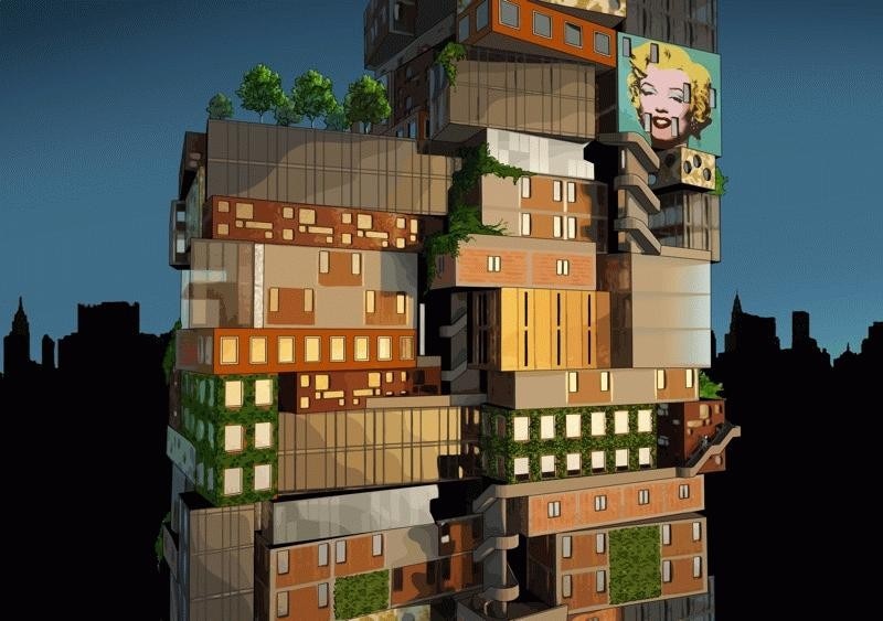 "A more diverse, complex, heterogeneous, and environmentally minded city need no longer be represented on its skyline by one-note architecture that makes a singular visual image and little else," explained John Beckmann, the founder of Axis Mundi, a Manhattan- based architecture firm.