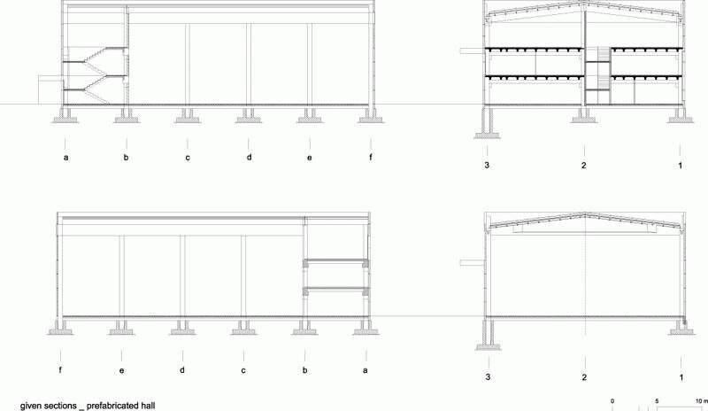 Site Area: 2500 mq; Bldg. Area: 780 mq; Gross Floor Area: 1.080 mq, Store: 75 mq, Offices: 150 mq, Lecture: 150 mq, Storage: 705 mq, Height: 11.70 m.