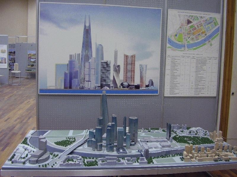 Fig. 1. The new business district Moskva-City: presently under construction (from the Moscow town planning exhibition).
